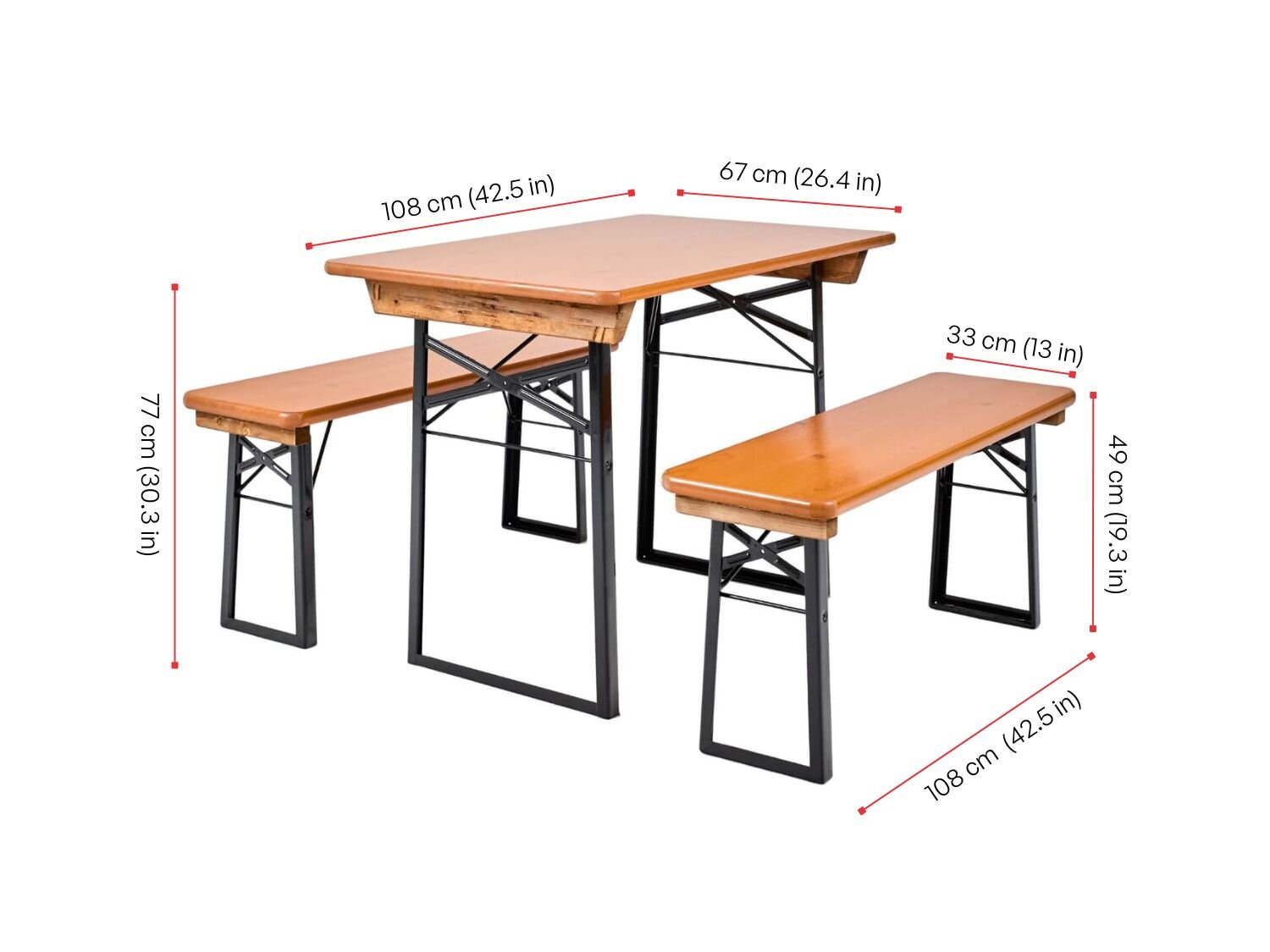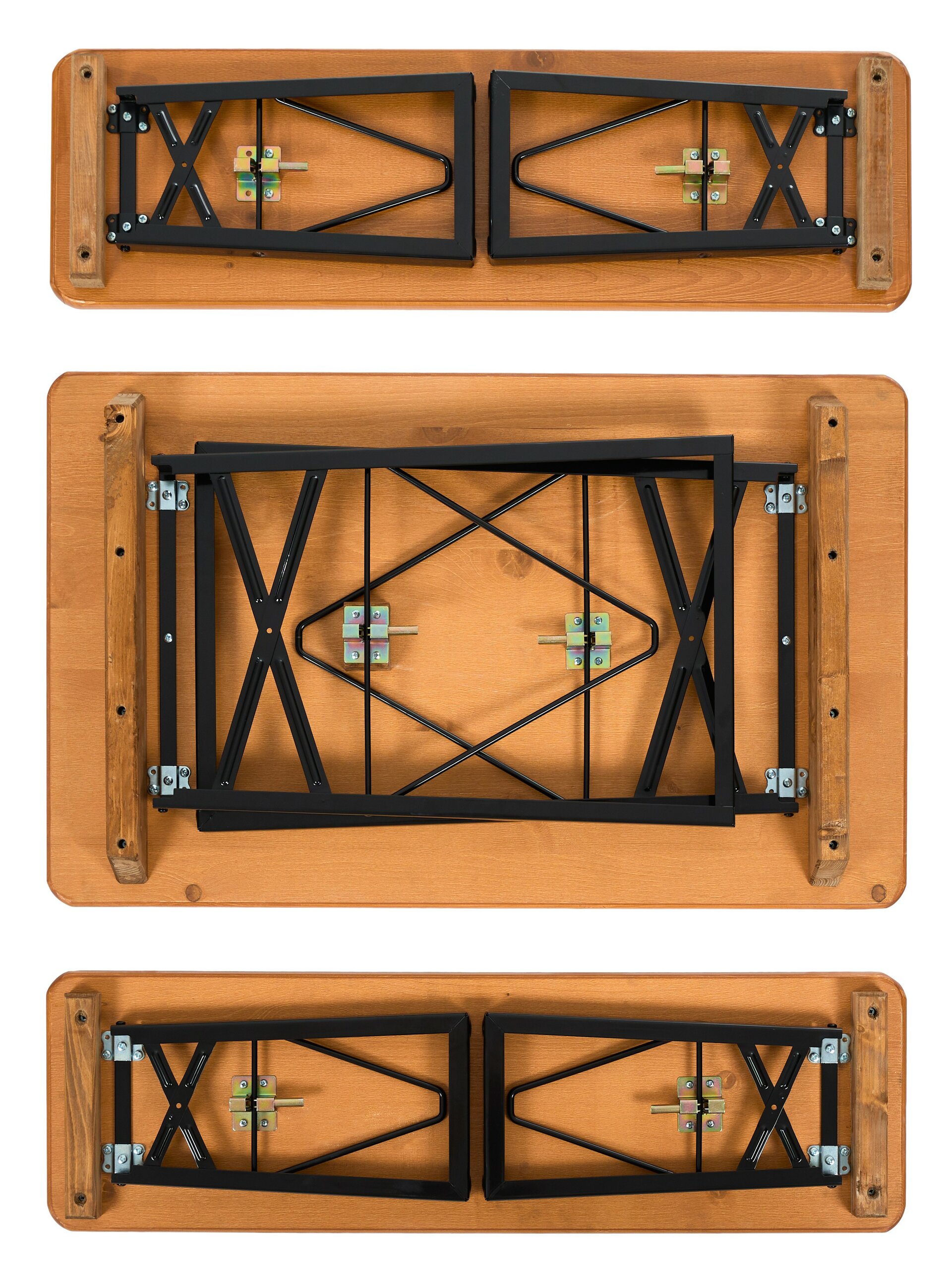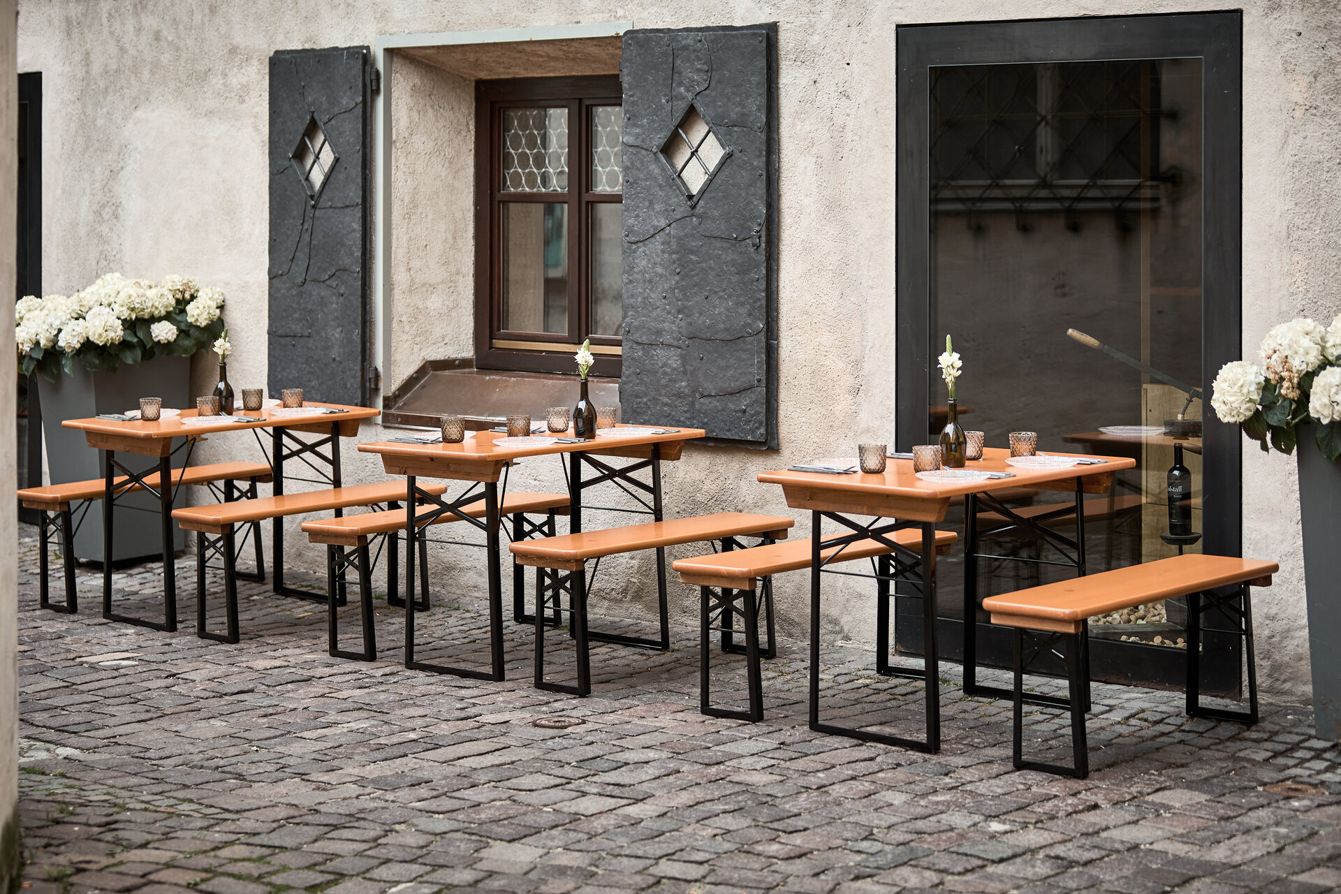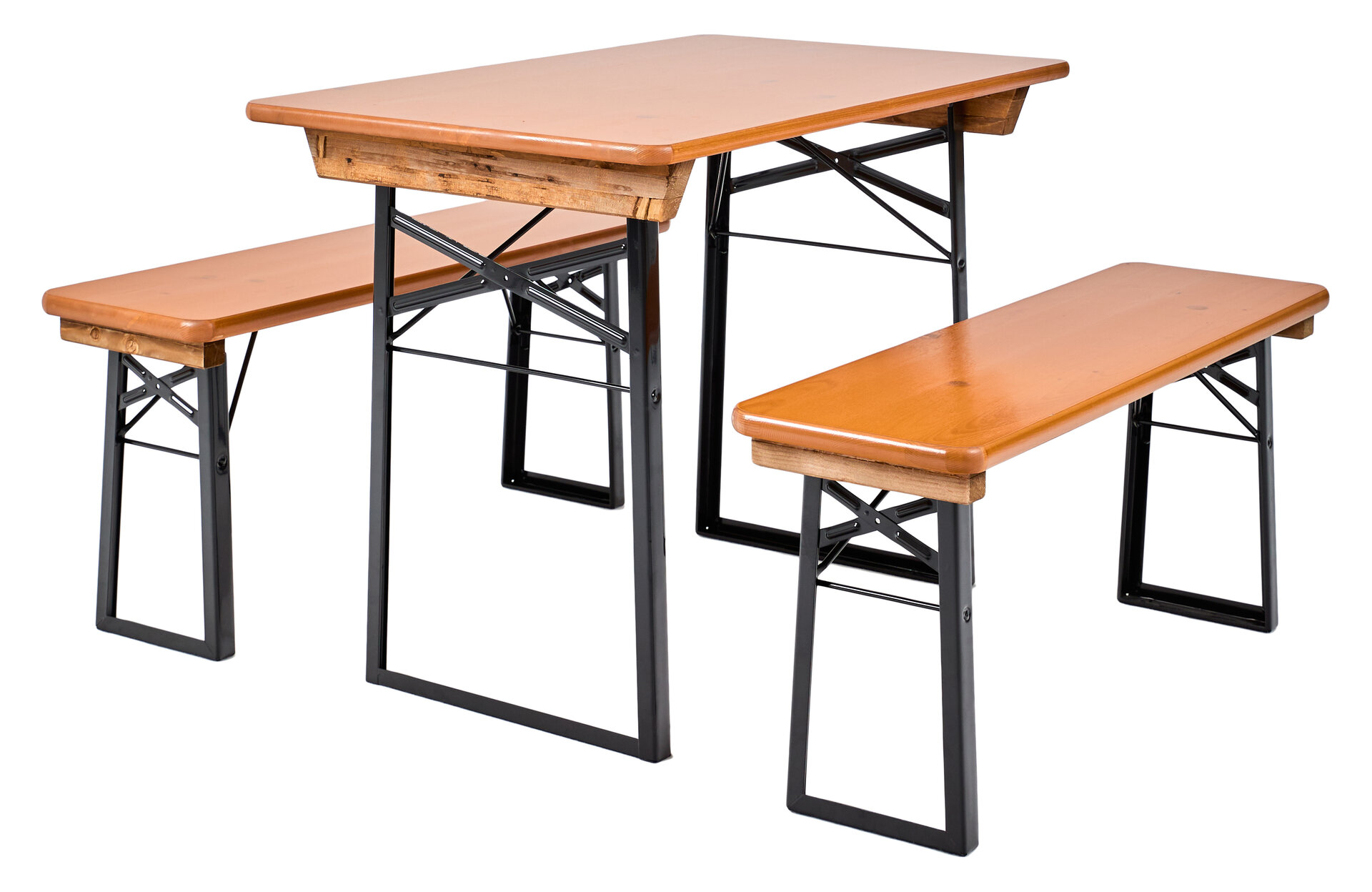Kurz, aber oho, ist unsere Bierzeltgarnitur im Kleinformat. Die Shorty hat eine Länge von 108 cm und ist so das ideale Klappmöbel für Terrassen, kleine Balkone oder schmale Gassen. In Sachen Komfort und urigem Biergarten-Feeling steht sie ihrem großen Vorbild, der klassischen Oktoberfest Bierzeltgarnitur mit 220 cm Länge, dabei in Nichts nach.