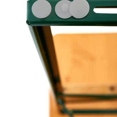 Die kleine Bierzeltgarnitur wird aus kammergetrocknetem Fichtenholz gefertigt. Es ist äußerst verzugsarm und hat kaum Asteinschlüsse.