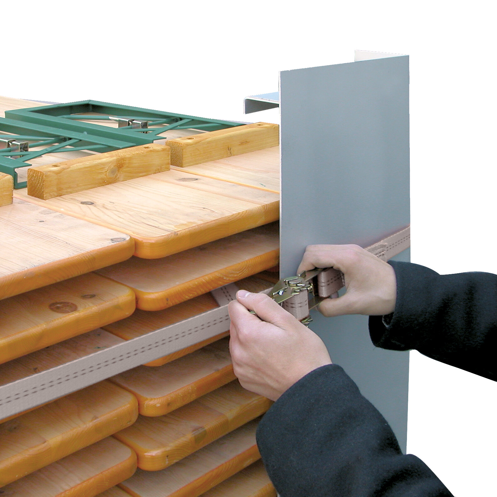 Gefertigt aus Stahl sind die RUKU1952® Transportboxen zuverlässige Helfer zur platzsparenden Lagerung und zum sicheren Transport von 20 Bierzeltgarnituren mit den Maßen 220x50 cm. Einen zusätzlichen Schutz bietet unser separat erhältliches Verschlusssystem. Für eine unkomplizierte Handhabung können die Seitenteile des Transportgestells entfernt und wieder im Rahmen verankert werden.