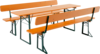 Lean back, stretch your legs and relax— that’s what the beer garden table set with backrest is made for. It features an extra-wide beer table and benches – obviously – with backrests. The slight ergonomic recline and broader seat surface ensure high sitting comfort. To increase the stability of our beer table set with backrest, we have extended the underframe of the beer bench to prevent it from tipping over when leaning back comfortably.